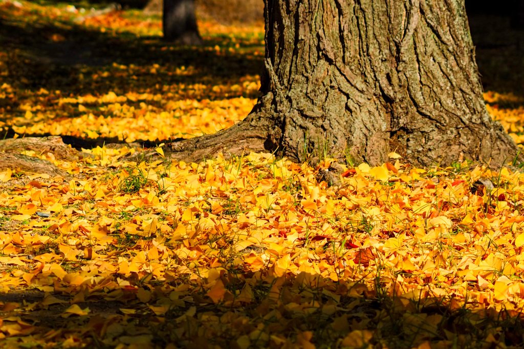 その一角に、大きな銀杏の木の落ち葉が。